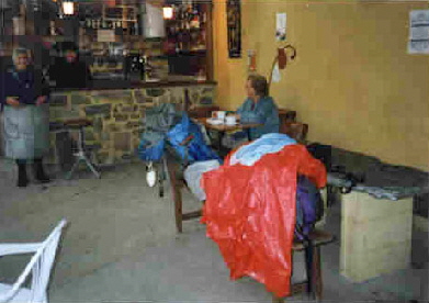 Die Unterkunft war normal belegt, es gab einen kaminbeheizten Aufenthaltsraum und man bekam morgens ein im Haus zubereitetes Frühstück. Die Herberge wurde von einer englischen Jakobsbruderschaft unterhalten. Die Herbergseltern waren Schweizer und sprachen natürlich auch deutsch. Sie waren sehr fürsorglich und bemühten sich um jeden Wanderer. Malena wurde von der Frau richtig „bemuttert“. Alle vier Wochen wurden sie von anderen Herbergseltern abgelöst. Am Schluß waren wir der gleichen Meinung: Rabanal del Camino war die beste Herberge des ganzen Weges. Unsere große Hoffnung für morgen: ein Tag ohne Regen. Gott sei Dank bekamen wir hier unsere Kleider wieder trocken.