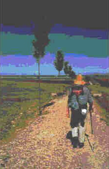 unser erster Wandertag war angebrochen. Zuerst galt es, unsere Reisekleidung gegen die Wanderkleidung zu tauschen. Das nahm einige Zeit in Anspruch, denn alles mußte so verstaut werden, daß es nicht zu viel Platz in Anspruch nahm und gut zu tragen war. Nach dem gemeinsamen Frühstück mit den Würzburger Frauen starteten wir um 7,30 Uhr. Unsere erste Etappe war 18 km lang bis nach El Burgo Raneiro. Der Weg führte durch ärmliche Bauerndörfer, die z. T. schon verlassen waren. Viele Türen waren mit Brettern vernagelt. Wahrscheinlich hatten die jüngeren Leute die Dörfer verlassen und sich in den Städten oder im Ausland Arbeit gesucht. Nach Auskunft der älteren Bewohner waren sehr viele nach Deutschland gegangen.