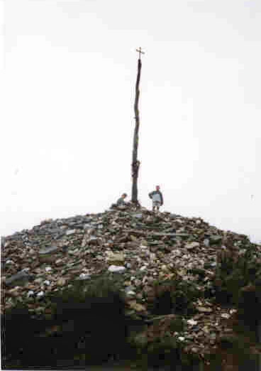 Es entwickelte sich ein sehr ergiebiger Landregen, der ab und zu von kräftigen Wind-und Regenböen ergänzt wurde. Als wir den steilen und steinigen Aufstieg über den Cebreiro-Paß bewältigen mußten, schoß uns das Wasser in Strömen entgegen. Gegen 15,45 erreichten wir dann O`Cebreiro. Jato hatte unser Gepäck an einem trockenen Ort am Eingang einer Gaststätte abgelegt. Wir holten es und gingen in strömendem Regen zum Refugio. Hier wartete schon ein Peregrino aus Deutschland auf die Öffnung, die um 16 Uhr sein sollte. Nach spanischer Manier wurde aber erst um 16:20h geöffnet. Alles an diesem Refugio war kalt und unfreundlich. Die Heizung funktionierte nicht und die Küchenherde waren nicht einzuschalten. Dabei waren wir naß und froren wie die Katzen. Nach und nach verließen viele Pilger diese unfreundliche Stätte und suchten sich andere Unterkünfte. Auch wir zogen aus und quartierten uns für 3000 Peseten in ein warmes Mason ein. Hier trafen wir auch Wolfgang aus Lindau wieder, den wir zum ersten mal in Villandangos begegnet waren. Mit ihm zusammen nahmen wir noch um 10 Uhr ein kräftiges Abendessen ein: Pommes frites mit gebratenem Schinken und Spiegeleier. Selbstverständlich fehlte auch die Flasche Rotwein nicht. Trotzdem schliefen wir gut und warm. Auch unsere Kleidung war am anderen Morgen trocken.